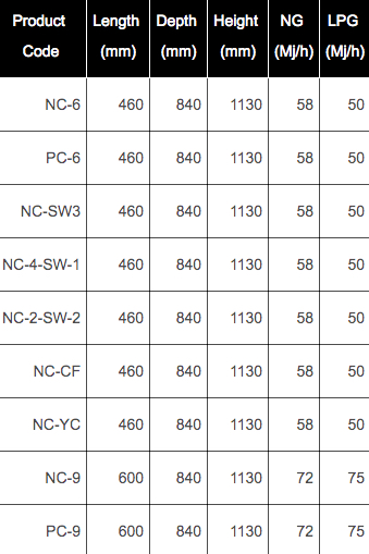 - Piezo ignition and flame failure device are fitted as standard